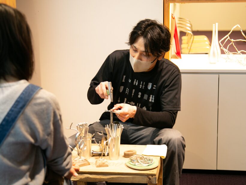 製造過程で出る錫の端材を加工し、伝統技法の鎚目打ちでオーダーを受けて目の前で仕上げる、職人の特別実演販売です。