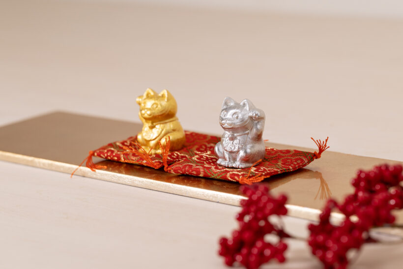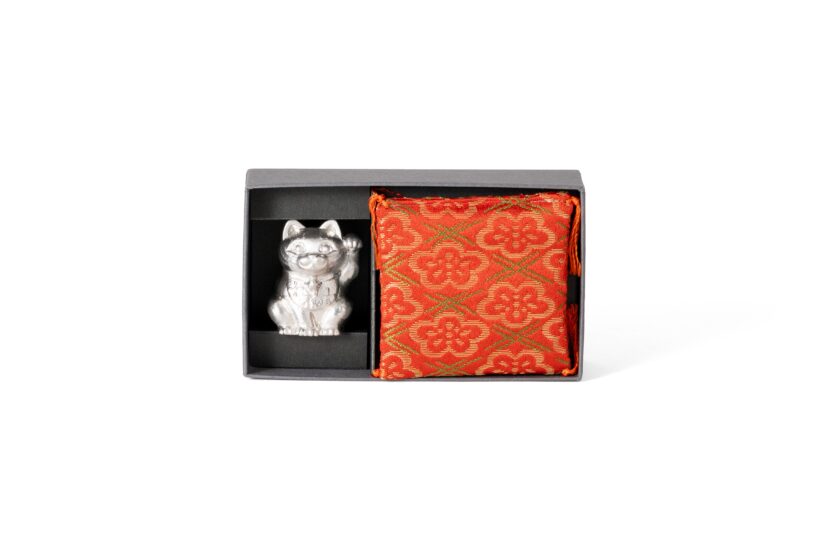 福を招く縁起物、まねきねこは右手で金運を、左手で商売繁盛や良縁を招くとされる置物です。能作のまねきねこは、穏やかな顔つきや前掛けの細かな表現が魅力です。 新しい年や門出の贈りものにもおすすめです。
