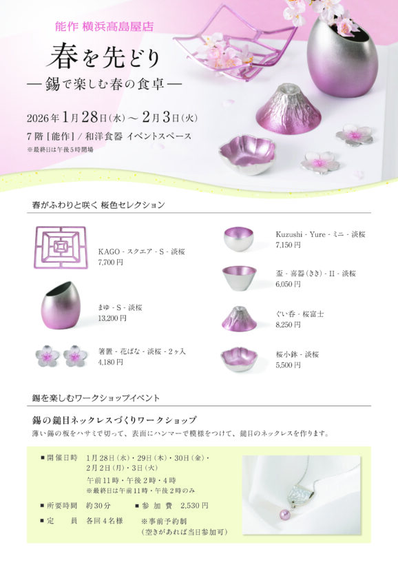 ご予約・お問い合わせ:能作 横浜髙島屋店 045-577-9277 (店舗直通)