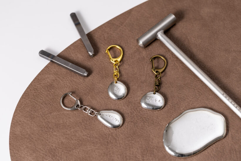 ころんと丸い錫に、お好きな文字や模様を刻印して、自分だけのオリジナル錫キーホルダーを作ります。