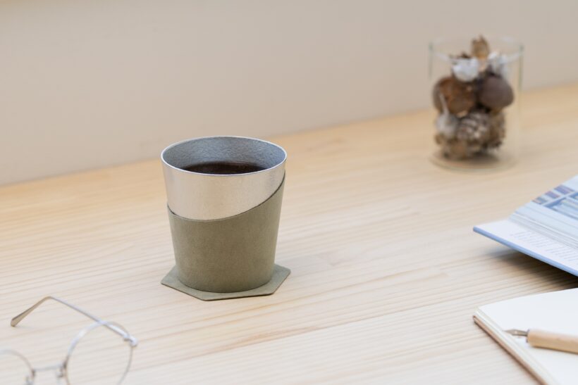 錫100%のタンブラーに、スリーブとコースターを組み合わせた「Break time Set」。
